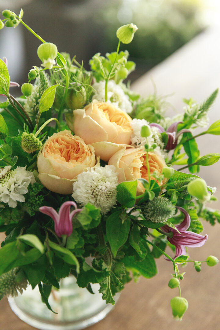 初夏をイメージしたブーケ4400円。瑞々しいグリーンがさわやか