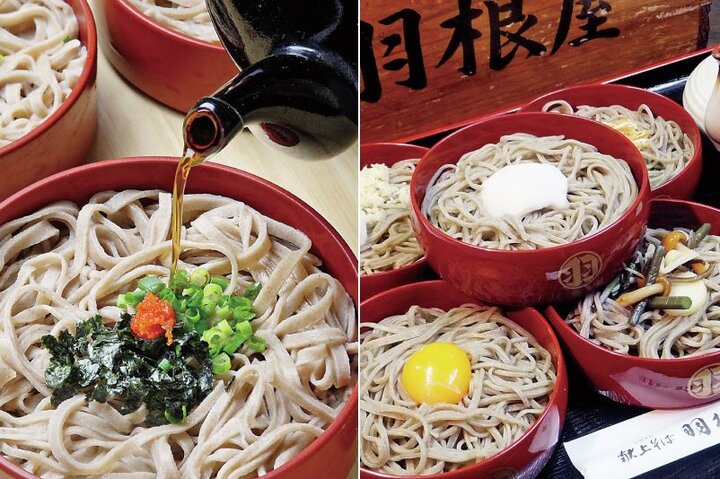 そばの実を殻付きのまま挽く出雲そばは歯ごたえがあり、噛めば噛むほどそばの豊かな風味が楽しめます。三段の丸い漆器に盛られた定番の「割子(わりご)そば」でいただきましょう。