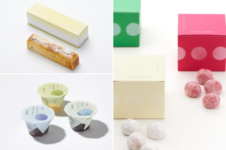 (左上)あんこ屋の小麦粉不使用のケーキ、(左下)夏のあんこ菓子、(右)あんこ屋の小麦粉不使用のクッキー