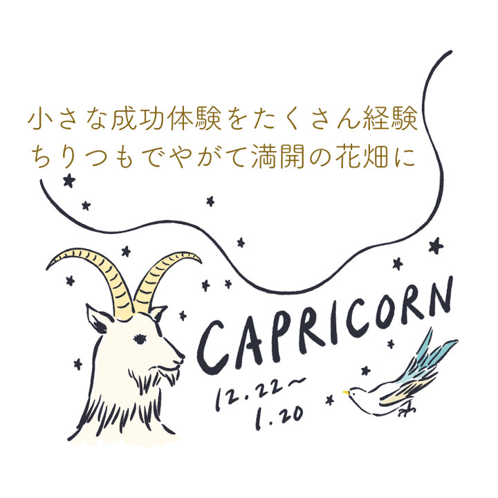 将来の目標に向かって、コツコツと着実に努力を積み重ねていくやぎ座さん。自分のいる位置を再確認し、ここまで来た自分を労わると同時に、さらなる高みを目指してゴールを定めましょう。風の時代に共通するテーマでもありますが、一般的な価値観に惑わされず、自分が幸せだと感じる自分軸でゴールを定めることが大切です。 30歳だから結婚しなきゃとか、安定した職業を選ぼうとか、みんなが同じ幸せ基準で社会を生きていた時代は終わりました。これからは、それぞれの物語を自分基準で生きている人が本当の勝者になっていくのです。 あまりに高い目標を掲げるとプレッシャーに押しつぶされがちなので、ひと粒ずつ種を蒔くような気分で、小さな成功体験を増やして。あなたが毎日少しずつ蒔いた種は、やがて見たこともないほど美しい花畑となるでしょう。