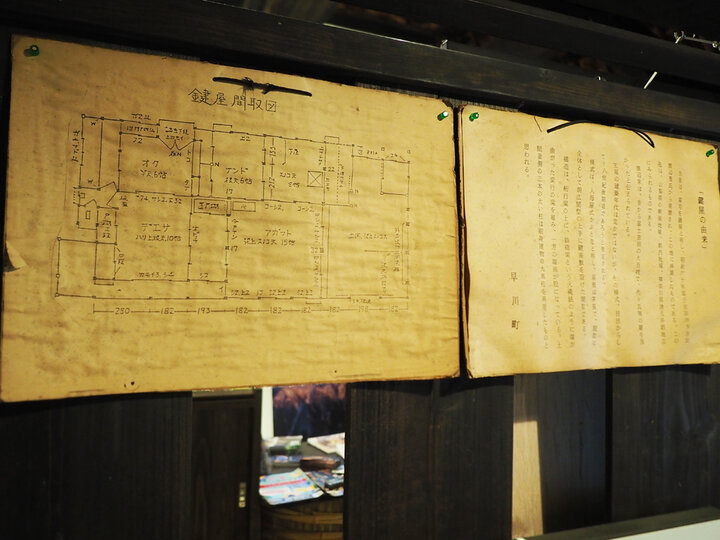 店内に展示されている、古民家の「鍵屋 間取図」