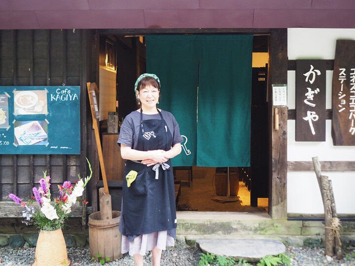 山梨県西部にそびえる南アルプスの麓。山深い南巨摩郡早川町をひたすら北上した高台に、築200年の古民家をリノベーションした隠れ家カフェ「鍵屋」はあります。玄関を上がると古い囲炉裏があり、ノスタルジックな空間がお出迎え。まるで民話の世界にワープしたかのような雰囲気の中で、愛情が詰まったメニューを心ゆくまで楽しめます。