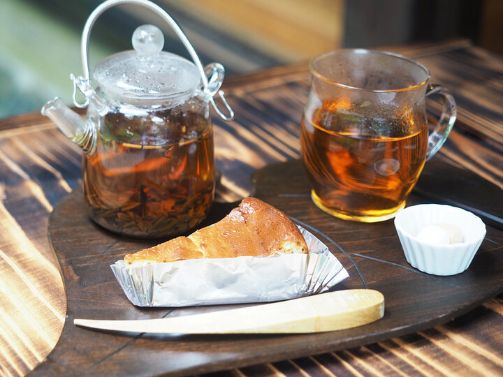一番人気のメニューが、「えごまチーズケーキ 」。ふだんケーキに使用しない「えごま」がたっぷり入っているので、チーズ好きなら「どんな味だろう?」とワクワクしてしまうはず。口に含むと、濃厚なチーズケーキにプチプチした「えごま」の食感が楽しい♪ここにしかない味と食感に思わず感動です! そして、チーズケーキに合わせるなら、ドリンクは有機肥料で大切に育てられた早川産の和紅茶がおすすめ。クセのない爽やかな味で、チーズケーキとの相性もばっちりです。