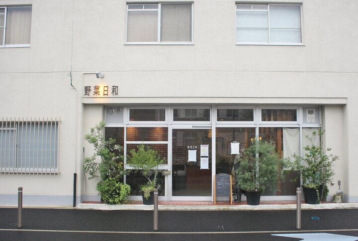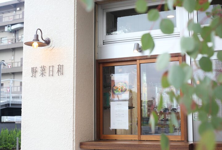 愛知県岡崎市の人気ビストロ「キッチンベル」の2号店としてオープンした「野菜日和」は、野菜を使った料理が楽しめるカフェ&レストラン。 「籠田公園」のすぐそばにあるクリーニング店をリノベーションしたお店となっていて、窓やサッシは昔のお店のものをそのまま生かしてデザインしてあります。名鉄名古屋本線「東岡崎駅」からは徒歩10分ほどの場所です。