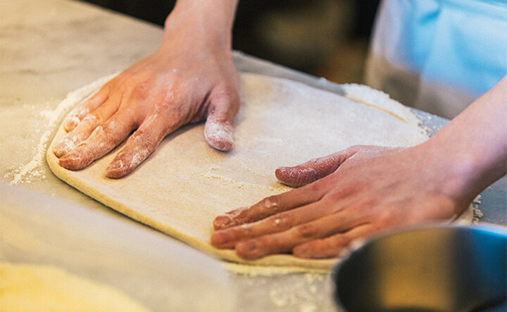 一方で、生地の上にのせる野菜やチーズにはそこまで強くこだわっていないと平さんは話します。 「自分の目で見ていいなと感じたものであれば、普通にスーパーの野菜を使ったりもしますよ。極上の食材ばかり使うと値段が上がってしまうし、そうではない食材でもおいしく料理するのが僕らみたいな価格帯の飲食店の仕事だと思うんです。 例えば、コースの中の1品や2品で旬の食材を使ったものを出して、その前後には手ごろな食材をおいしく料理したものを出す。そういうふうに、全体のバランスを見て満足してもらう料理を作っていきたいんです」。