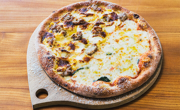 「以前、代々木上原のレストラン『sio』の鳥羽周作シェフとコラボして、那須のゲストハウス『chaus』で牛一頭を料理するイベントをしました。その際、どうしてもホエーが余ってしまうという話を聞いて、どうにか使いたいなと思いました。試しにホエーをピザ生地に入れてみたら、同じ乳製品であるチーズとすごく相性が良かったんです!」と平さん。試行錯誤を繰り返し生地は今なお進化し続けていて、現在は一番だしや麹を使った生地作りにチャレンジ中なのだとか。