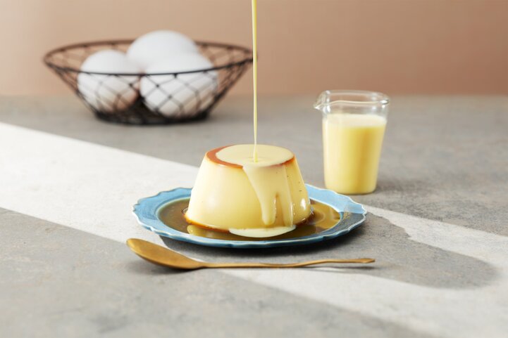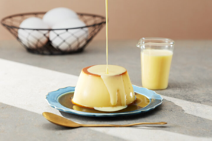 「tsukiji SHOURO」のスイーツは、どこかなつかしく、不思議な新しさ。新鮮な素材だけで作られているので、美味しいうちに早めにいただくのがおすすめです。 「プリン」は、なつかしさを感じるしっかり食感と、甘く香ばしいカラメルソースが魅力。たまごをもっと味わってほしいとの思いから、後がけのソース「スープアングレーズ」で仕上げています。ひと口たべれば、マダガスカル産のバニラビーンズの甘い香りが広がります。