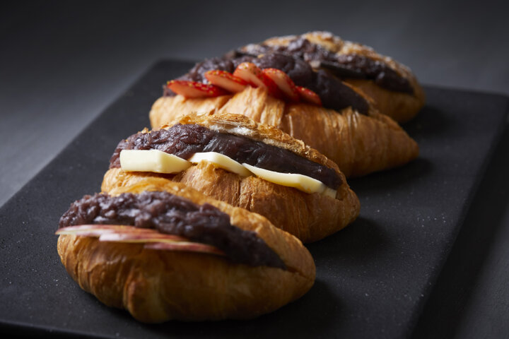 「あんクロワッサン」は、あんこ本来の味わいをシンプルに楽しむスタイルの「あんクロワッサン」をはじめ、マリアージュのアクセントとして、発酵バターを挟んだ贅沢な味わいの「バターあんクロワッサン」、日替わりの季節のフルーツとともにさっぱりといただける「フルーツあんクロワッサン」、フランス産のビターチョコレートで大人の味わいが楽しめる「ショコラあんクロワッサン」など、常時4種類が展開されます。