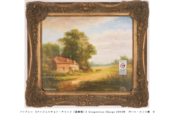 ストリート・アートのイメージが強いバンクシーですが、報道でめったに見ることができないプライベート・コレクター秘蔵のオリジナル作品も会場に並びます。 町の壁にスプレーで描く手法とは異なる、さまざまな表現手法で描かれた額装作品は、バンクシーの多様な表現を見ることができます。 イギリスのファッション・デザイナー、ポール・スミス氏から借りたという希少な油彩画《Congestion・Charge》は、今回の特別出展。ぜひ会場で探してみてください。