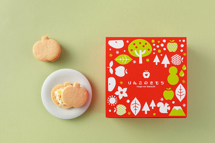 りんごモチーフのクッキーがかわいらしい「りんごのきもち」。サクサクしたクッキーの間には、シャキッとした食感のりんご果肉とふわっとした口当たりのバタークリームがサンドされています。 使っているのは青森産のりんご。りんごらしい食感を残してセミドライに仕上げています。クッキー生地はほのかに香るシナモンが爽やかなアクセントで、風味豊かなバタークリームとの相性も◎。1個のサイズが大きめなので食べごたえもありますよ。