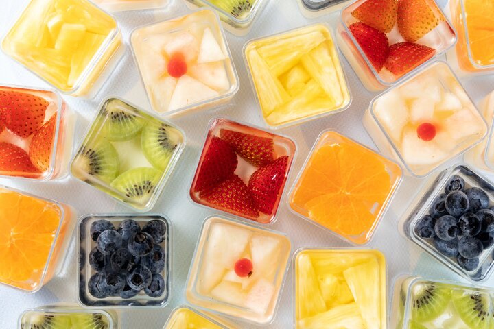 フルーツは、いちご、もも(~8月31日)、ブルーベリー、キウイ、パイナップル、みかんの全6種類が展開されるほか、9月1日からはシャインマスカットが登場します。 色鮮やかでフレッシュな果物をイメージさせる、フルーツジュエル専用のオリジナル化粧箱に入った3個入りと6個入りのセットも販売されているので、贈り物やお土産にもぴったりですよ。 まるで宝石箱のような手のひらサイズのフルーツゼリーを、ぜひ食べ比べてみてくださいね。