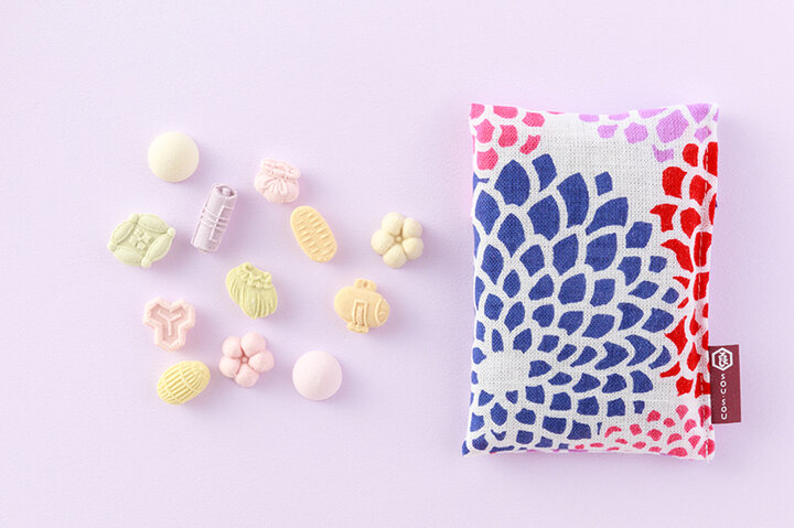 ポップな和柄の袋も素敵♪ ちょこんと愛らしい宝尽くしの落雁「宝ぽち袋」/京都府
