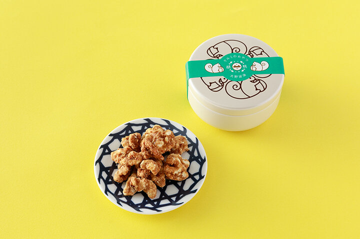 缶の中に入っているのは、キャラメリゼ風に仕上げた香ばしいクルミ。石川県金沢市で佃煮の製造・販売を行う「大畑食品株式会社」が作る「クルミのおやつ」です。 金沢市で昔から親しまれてきたクルミをローストしてフレーバーとともに釜の中へ。佃煮づくりの製法を活かし、クルミを壊さないよう丁寧に絡めてカリッと仕上げました。 可愛いらしいリスのイラストが描かれた缶は「大好きなクルミを見つけたリスたちが、大事に抱えて仲間とくるくると回って遊んでいる様子」をイメージ。食べ終わった後も小物やおやつ入れに使いたくなりますね。