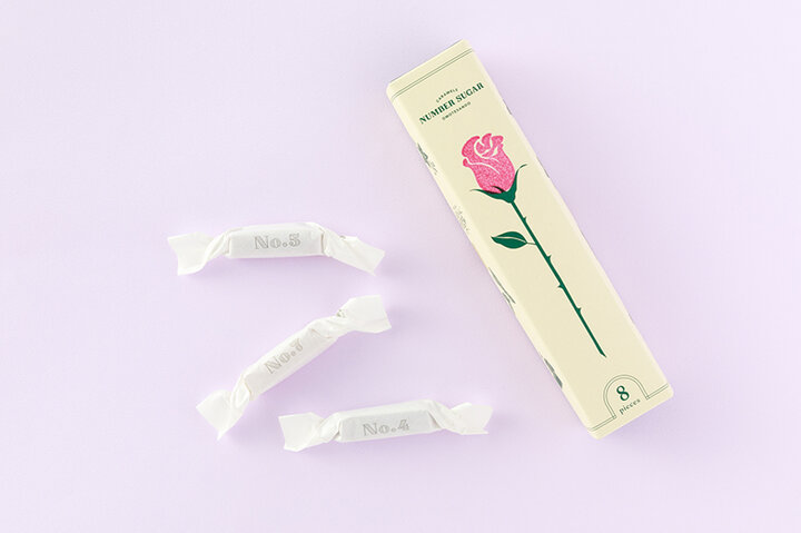 数字が記されたシックなキャンディー包みを解くと、現れるのはバターのような甘い香りを纏ったキャラメルです。 「NO.1」の包みは、バニラのフレーバー。練りこまれたバニラビーンズの甘い香りがミルキーな味わいを引き立たせます。ピンクがかった色味の「NO.5」は、ラズベリーの甘酸っぱい香りとほのかな酸味がクセになる味わい。フレーバーごとにナンバリングされたキャラメルは、どれもなめらかな口どけと上品な甘さです。