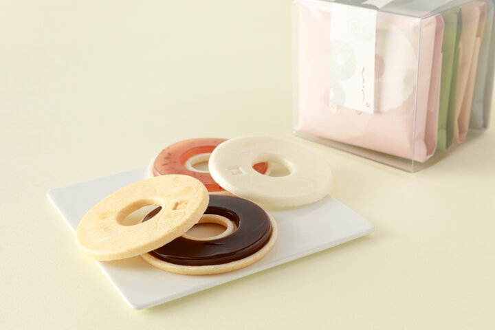 「くう」は人気デザインユニット「トネリコ」との店舗設計を申し込んだことがきっかけで、デザインに惚れ込みコラボレーションで誕生したはさみ最中です。一見、最中に見えない珍しいドーナツ型をした「くう」。淡いやさしい色合いとスタイリッシュな見た目に注目が集まっています。 「空(くう)」には、すきま。空間。余地。余白という意味があり、ドーナツ型なので、どこから食べてもひとくちめから最中種とあんこを一緒にいただけます。味はこしあん、桜、よもぎ、黒ごまの4種類。皮と餡が個別包装になっているので、自分であんこをセットすることができ、いつでもサクサクの食感が楽しめますよ。