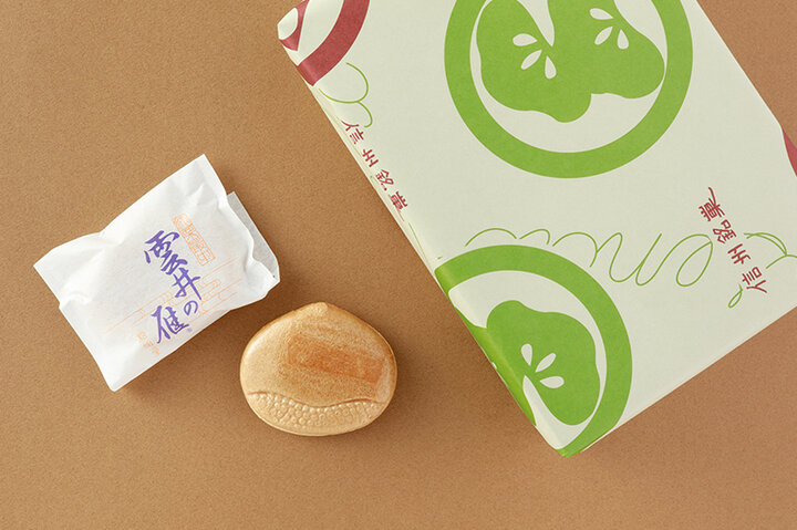 和紙でできた袋に包まれているのは、栗の形を模した最中。一個は本物よりもやや大きめのサイズで、さっくり香ばしい最中の皮の間になめらかな栗のペーストが詰まっています。口に運ぶと、その濃厚さに驚きます。栗の持つほっくりしたコクにほんのりとした甘さ。 この「雲井の雁」の原料は、栗と砂糖、最中種のうるち米だけ。栗のペーストは純栗あんと呼ばれる「松仙堂」の特製。それを手作りの最中種に挟んでいます。「松仙堂」のこだわりは、自家製の風味豊かな小布施栗を使うこと。原料の栗の自園栽培から丁寧な仕上げまでの一貫が、良質な菓子作りにつながっています。