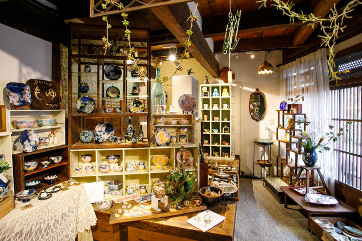 瀬戸の玄関口、尾張瀬戸駅から歩いて約3分。狭い通りに建つ2階建ての古民家が「galleryもゆ」です。若い作家の発表の場として2010年にオープンし、草木の芽が出ることを意味する“萌ゆ”という名前が付けられました。 「もゆ」をプロデュースするのは、自身も陶芸家であるオーナーの野村晃子さん。1階には野村さんの作品をはじめ、瀬戸とゆかりのある若手作家14人の作品。2階には野村さんが全国から集めた陶器やガラス、古道具や雑貨などバラエティー豊かなアイテムが並んでいます。