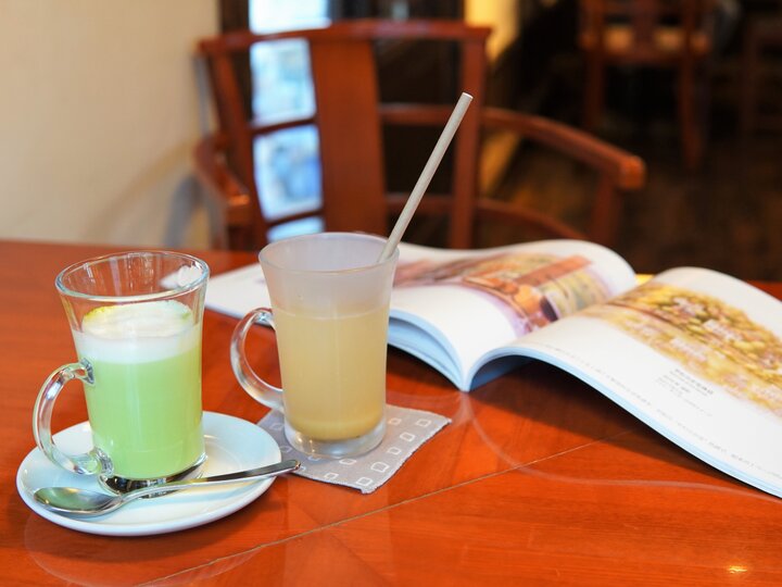 「抹茶ミルク」「自家製ジンジャーエール」(各400円)