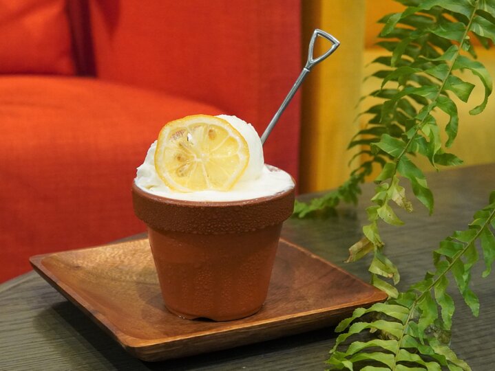 この「グリーンポットパフェ」と呼ばれる植木鉢パフェは期間限定を含めて5種類ほどあり、鉢の底の水を通す穴を鉢底石に見立てたシリアルやクッキーで塞ぐなどの工夫も楽しいところ。 定番の「レモンパフェ」と「抹茶パフェ」には、まったりとしたレモンや抹茶のアイスクリームのほかにもう1種類、シャリシャリとした食感が楽しめるアイスクリームも入っています。外からは見えないだけに小さなスコップのような形のスプーンで食べ進んでいくと、マシュマロやナタデココに出会うなど発見がありますよ。