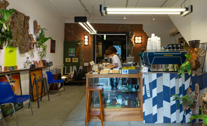 JR元町駅の南側、自家焙煎コーヒーの店「LIMA COFFEE(リマコーヒー)」。以前はテイクアウトがメインのコーヒースタンドでしたが2021年3月、レトロビルに移転し、念願のイートインスペースが誕生しました。アメリカンヴィンテージな店内は写真映えするとあって話題に。界隈のショップとの交流が盛んで、他店のお菓子が手に入ったり、コラボアイテムを生み出したり、コーヒーショップの枠にとらわれない個性が光ります。