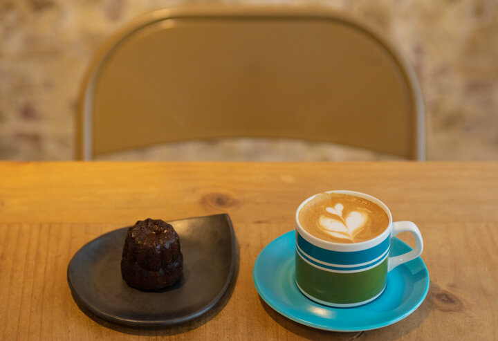 スイーツは交流のあるショップから少しずつ仕入れているため、いろんなお店の味を楽しめます。たとえば、カヌレは、神戸・花隈にある「加集製菓店」のもの。焼き立ては外がカリカリ、中がモチモチ、2日目以降はしっとりモチモチ、ラムの香りは、カフェラテとの相性が抜群です。 日替わりで届くキッシュは、神戸・元町にあるイタリアン食堂「クッチーナ・リベロ」、ケーキは神戸・兵庫区にあるパティスリー「歩く鳥」や北海道の「くぬすぱーほいすひぇん」のものなど常時7~8種。ラインナップはその時期によって変わります。