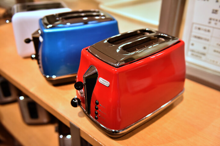 カラフルな色のトースターが並ぶ