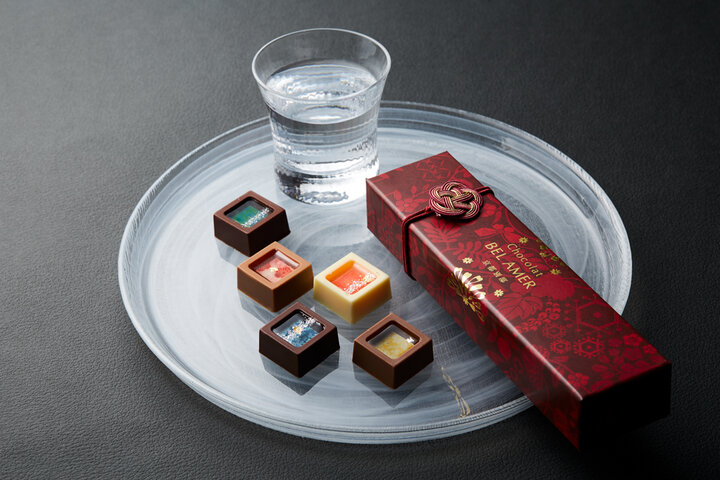 「瑞穂のしずく」は、枡に見立てたショコラの中に、瑞々しいジュレを流し込んだベルアメール京都別邸のスペシャリテです。 この秋から、京都・伏見の日本酒「神聖」、愛媛県産「ほうじ茶」、京都・水尾産「柚子」など、全国各地から選び抜いた素材をジュレにした3種の新作ショコラが登場しました。 ショコラティエが全国から選び抜いた素材を最大限生かした、ジュレとショコラのマリアージュを楽しめます。