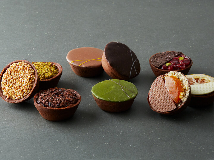 カカオ風味のタルト生地にガナッシュやアーモンド生地を入れ、華やかなデコレーションを施した「タルトショコラ」は、フルーツやナッツを生かした新フレーバーが仲間に加わりました。 香りの良い「レモン」「クランベリー」「アプリコット」のフルーツのタルトや、食感の良いナッツやカカオ二ブをあしらった「ピスタチオ」「カカオ」「アーモンド」といった新作は、いずれもチョコレートと素材の美味しさを楽しめます。 「柚子」「抹茶」「ビター」もより食べやすく、軽い食感にリニューアルされました。