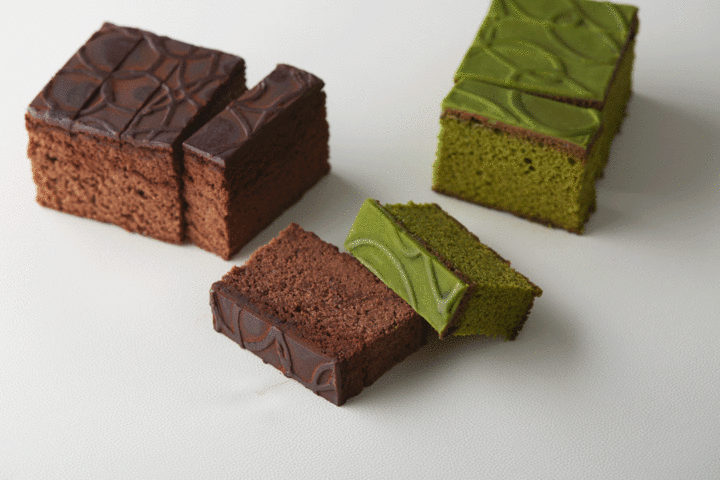 サトウキビの風味豊かな素焚糖を使用したショコラ専門店の「ショコラカステラ」は、水分を含みながら蒸し焼きにすることで、ガナッシュと絡みあう、よりしっとりとした生地に仕上げられています。 ベルアメールオリジナルチョコレートをベースに作られた「ビター」と、京都・和束町の抹茶を使用した「抹茶」の2種類がそろいます。 ひとつひとつ丁寧に作られたこだわりのショコラを、ぜひ味わってくださいね。