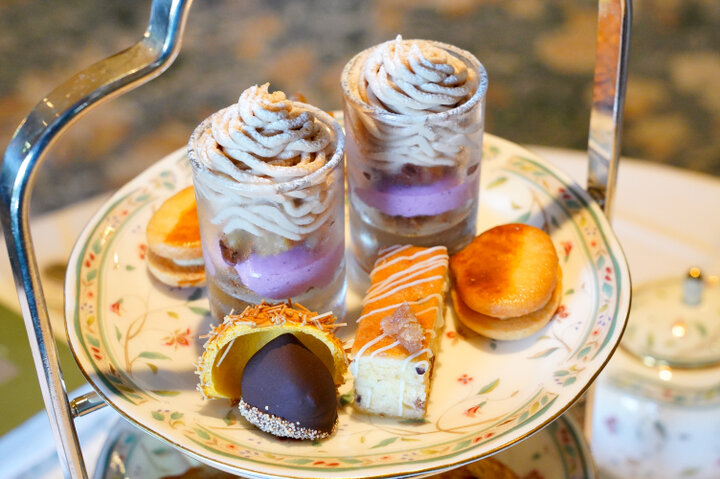 都内のホテルで初めてアフタヌーンティーを提供したのがこのロビーラウンジと言われています。英国の伝統的なスタイルを踏襲した3段のケーキスタンドに華やかに盛り付けられ、季節によって内容も様々。取材で訪れた秋のシーズンは栗を贅沢に使用したアフタヌーンティーでした。