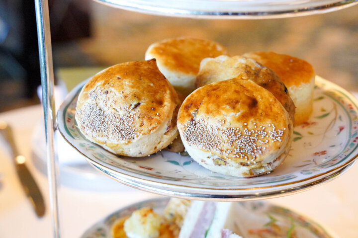 中段には自家製オリジナルスコーンが3種。こちらもプレーンのほか和栗とラム酒、栗とドライフルーツなどマロンを模した形がユニークです。 飲み物はコーヒーのほか約20種類の中から好きな茶葉をリクエストできる紅茶がいただけます。茶葉はこのマロンアフタヌーンティーにあわせて用意され、取替えやおかわりは自由。定番のダージリンやアッサム、フレーバーティーやハーブティーに加え、岩手県に自生する椿の葉をメインにブレンドした「椿茶」やマスカットの香りが広がる「グリーンティーマスカット」など幅広くラインナップ。いろいろ試すと新しいお気に入りが見つかりますよ。