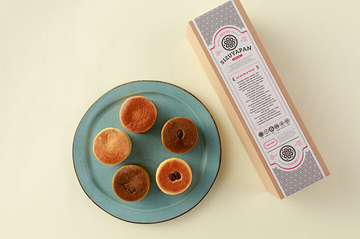 英字が書かれたスタイリッシュなパッケージを開けると、円柱形の小ぶりなあんぱんがコロン。かわいらしいふたくちサイズの「SIZUYAPAN」は、京都発のグローバルなあんぱんです。 全部で10の味があり、パン生地はプレーンな「白ぱん」、黒糖味の「黒ぱん」をベースに、酒粕や宇治の有機抹茶を練り込んだラインナップも。あんは大納言小豆を使ったこし・つぶのあんこから、シナモンや国産の栗をトッピングした変わり種まであり、どのパンも個性豊かです。例えば「MATCHA」は、抹茶パンに蜜漬けした小豆入りの抹茶あん。ほろ苦い抹茶の香りがふわんと鼻をくすぐり、ほのかな甘みを引き立てます。