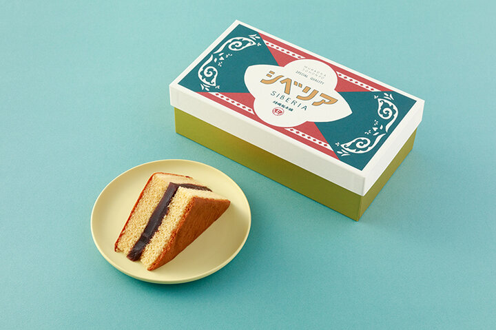 カタカナの商品名とどこかレトロな色合いのパッケージがかわいい「シベリア」。「シベリア」とは、羊羹をカステラに挟んだ和菓子のこと。 従来のシベリアはカステラに羊羹を挟んだものですが、村岡総本舗では羊羹とカステラの間に自家製餡を挟んで5層に。自慢の自家製餡は伝統の練り製法に天然水を使い、小豆本来の風味と味わいを引き出しています。羊羹は創業以来の伝統製法で作る「切り羊羹」を使用し、伝統的な長崎カステラでサンド。しっとり生地のカステラに、スッキリとした甘さのこし餡、外はシャリ感があり、中はやわらかい口当たりの羊羹、5層が織りなすハーモニーが楽しめます。