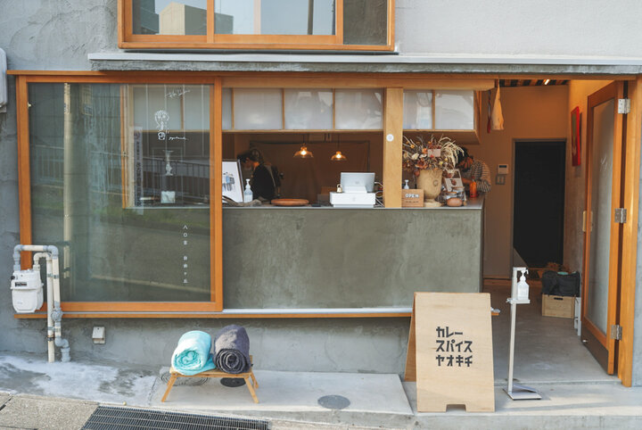 八百屋から届く新鮮な野菜で作る、辛くないスパイスカレーをコンセプトにした「八O吉」の次なるお店としてオープンしたのがヴィーガンスタイルのカレー専門店。地下鉄吹上駅からすぐの場所にあり、自由が丘のお店と同様テイクアウトのみのスタンドスタイル。朝の時間は珈琲スタンドとして営業し、クラフトビールや野菜のから揚げなども販売。夜は仕事や学校帰りにふらりと立ち寄る人も。 こちらのカレーは干し野菜や野菜の皮からとった出汁をカレーベースに加えることで、和食のような感覚で食べられるじんわりと旨味が広がる味わい。トッピングも大ぶりの野菜で色とりどりです。