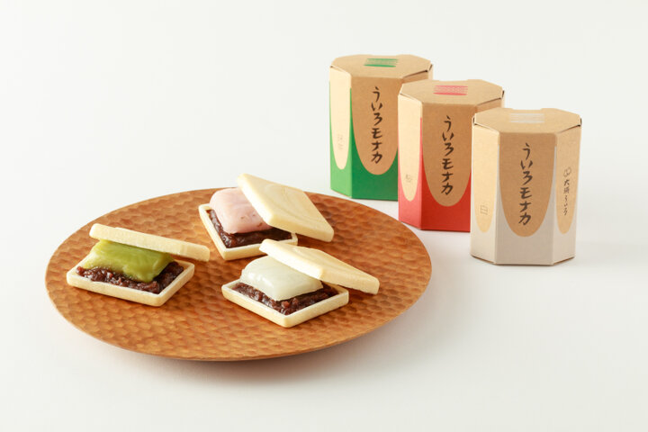 ひと口サイズの「ういろモナカ」は、名古屋の老舗「大須ういろ」の看板商品です。モナカ皮に餡とういろを自分ではさんで食べる新しいスタイルで、ひと手間かけるプチ手作り感がSNSなどで評判に。 パリパリのモナカ皮に餡を絞り入れ、その上に弾力のあるういろをのせたら、もう一枚のモナカ皮ではさんでいただきます。もっちりしたういろ、しっとりなめらかな小豆のこし餡、サクサクして香ばしいモナカ皮と、3つの異なる食感のハーモニーが楽しめます。