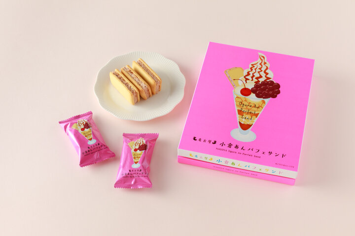 蛍光ピンクポップなパッケージに包まれた名古屋スイーツ「小倉あんパフェサンド」