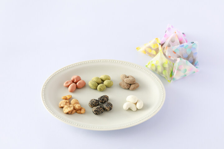 製造から販売までを一貫して手がける豆菓子専門店「豆福」。全国でも数少ない自社工房併設のお店で、さまざまな種類の豆菓子が作られています。なかでも特に人気の商品を少しずつ味わえるのが「豆だくさん」という詰め合わせです。 国産にこだわった落花生や大豆など6種類の豆を使用。〝アールグレイと和三盆のアーモンド〟や〝本わさびと青海苔のピスタチオ〟など、甘い系としょっぱい系の味のバランスがよく、豆と味付けの絶妙なマッチングに驚かされます。