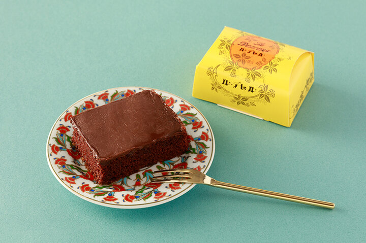 黄色地にオレンジがアクセントのパッケージには、クラシカルな金の装飾。どこか懐かしい箱を開くと、なかには金紙に包まれた「ル・デセール」が入っています。 包みに添えられた楊枝で切り分け、まずはひと口。ビターチョコレートとココアスポンジ生地を使っているため、甘さ控えめで品のある味わいです。あと味には、くるみがやさしく香ります。冷やして食べると、コーティングのチョコレートがパリッとして、ふわふわのスポンジ、コリッとしたくるみと合わせて3つの食感が楽しめますよ。