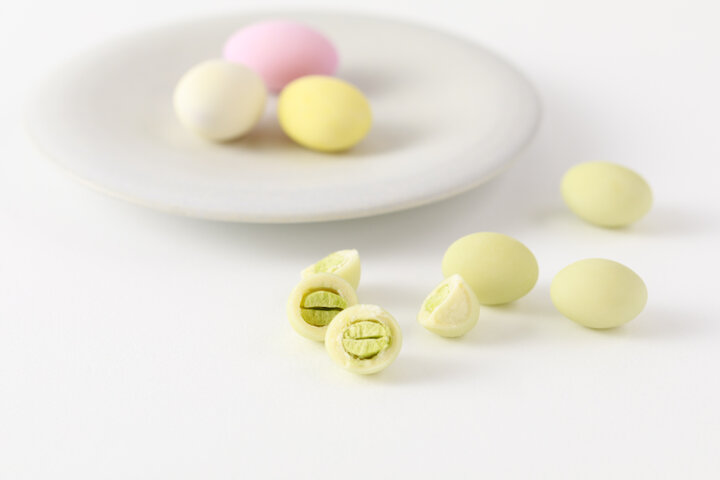パステルカラーがかわいい、幸せを運ぶ豆菓子「青豆のドラジェ」