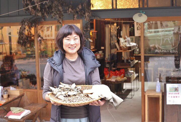 JR飯田線「東栄駅」を降りるとすぐの場所にある「maru-kai」は、名古屋からこの地に移住してきた長谷川さんがはじめたセレクトショップ。地元の人と繋がりが持てることをしたいと、使われていなかった駅前の商店を借り受け、奥三河に伝わる手仕事やハンドメイド作品を紹介するお店を開きました。