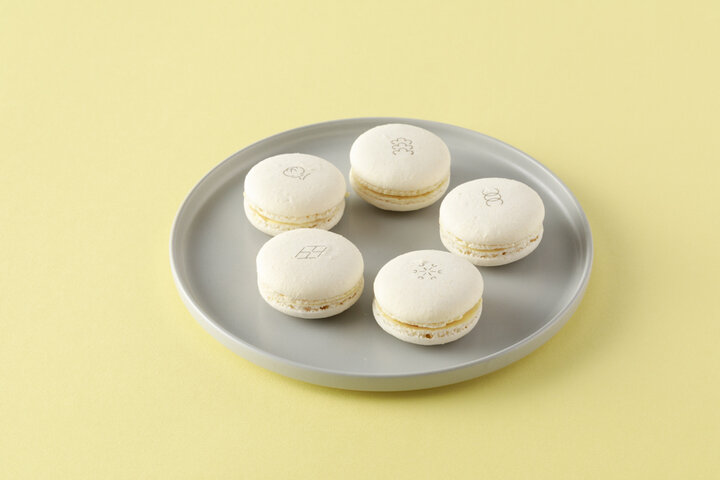 ふわっと華やかな酒粕の香りが漂うオフホワイトのマカロンは、和の素材と洋の素材のペアリングが楽しい大人のお菓子。 「酒粕×クリームチーズ×パッションフルーツ」は、北海道産のフレッシュなクリームチーズにフルーティーな酸味が弾けます。苺ガナッシュと苺のパートドフリュイの「酒粕×苺×苺チョコ」は、ベリーのお酒のような華やかさがリッチな味わい。 「酒粕×トマト×トリュフ」や「酒粕×いぶりがっこ×ビターチョコレート」、「酒粕×ブルーチーズ×オレンジ」は、素材の持つほのかな塩気や独特の香りに、フルーツやチョコレートがマッチし、まるでフレンチの前菜のようなハーモニーを楽しめます。