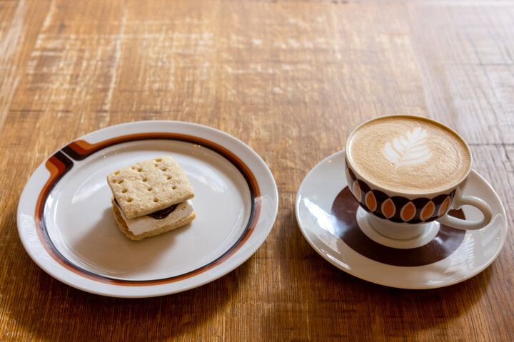 ラインナップは都度入れ替わりますが、比較的登場率が高いのが人気の「スモア」。全粒粉の香ばしいクッキーで手づくりのマシュマロとビターチョコレートをサンドしています。