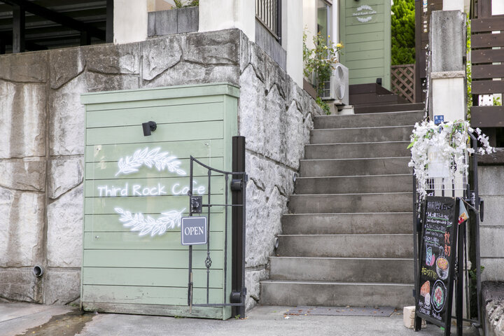 大仏様や長谷寺を巡る賑やかな通りから一本入った路地裏にひっそりと佇む「Third Rock Cafe(サードロックカフェ)」。淡い萌黄色の壁が目印の一軒家は、吹き抜けの開放感と木の温もりが心地よく、まるで仲の良い友人の家に招かれたよう。天気の良い日は、長谷の柔らかな風を感じるウッドデッキのテラス席もおすすめです。