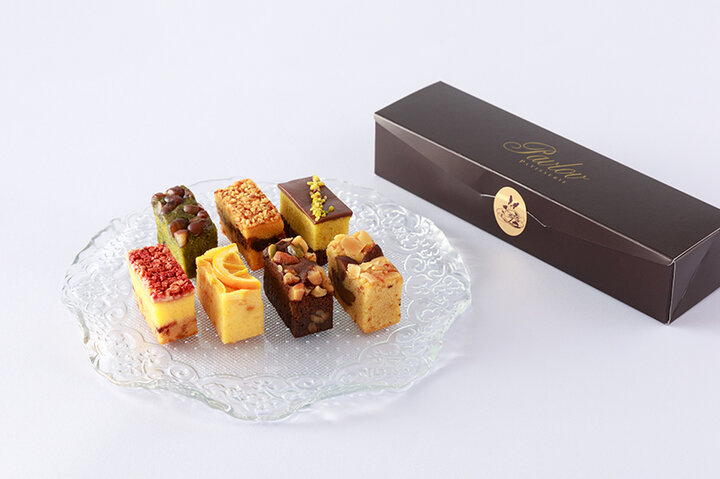 宝石箱を開けたときのようなときめきに出会えるパブロフのパウンドケーキ。華やかでいてかわいらしさも感じるこのお菓子は、おめでたい結婚式の披露宴で参列者に感謝を込めて手渡しをする引菓子が原点です。幸せのおすそわけを意味する小さなパウンドケーキには思いやりのある温かい気持ちもたくさん詰まっています。 ナッツやフルーツが艶やかなパウンドケーキは、お店でいただく生パウンドケーキの味わいそのままに、想像以上にしっとり感がありますよ。 7個入りのオリジナルアソート以外にも紅茶やクグロフとのセットもあり、オンラインストアでは熨斗やギフトカードをつけてもらえるので、お歳暮やギフトにもぴったりです。
