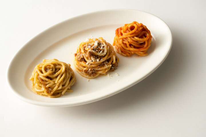 横浜に店を構えるイタリアンの名店「SALONE 2007」。パスタ世界大会でチャンピオンに輝いた弓削啓太シェフのスペシャリテ「アンチョビソース」をはじめ、自慢のトマトソースやミートソースを含む計3 種をオリジナル麵とセットでお届け。