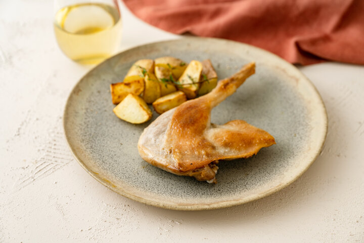 真鴨の本場、滋賀県・長浜に店を構える「一湖房」。鴨のロース煮が名物ですが、隠れた名品として知られるのが「骨付き鴨のコンフィ」。1日塩漬けにした鴨肉を低温でじっくりとオイル煮、肉の旨みを閉じ込めました。フライパンで肉の表面をカリッと焼くといっそう香ばしく仕上がります。