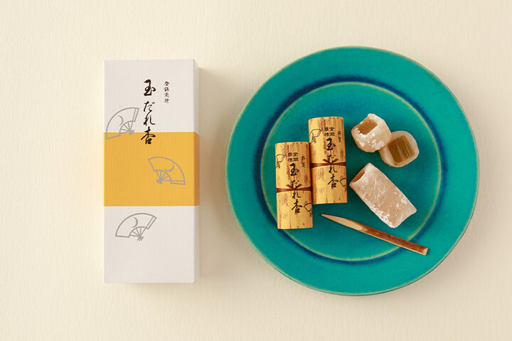 約1400年前に創建されたといわれる東日本最大の木造のお寺、長野市の善光寺。「玉だれ杏」は、観光や参拝客でにぎわうその門前に店を構える「長野凮月堂」の名物です。善光寺詣でのおみやげとして古くから知られ、作家や著名人にも愛されてきました。 「玉だれ杏」に使われているあんずは長野県の特産物のひとつ。地元産のあんずを練り込んだ甘酸っぱい味わいの羊羹を、柔らかな求肥で包み込んでいます。羊羹の固さと求肥の柔らかさ、周りにまぶされた砂糖と長芋でできたそぼろのシャリっとした食感が特徴です。