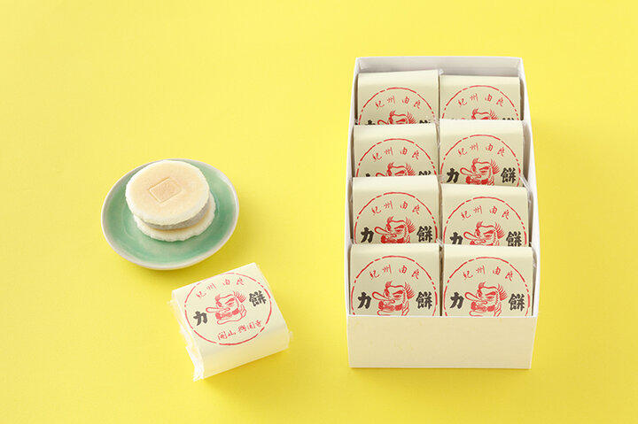 「天狗力餅」は、和歌山県由良町の「菓匠 錦花堂」による銘菓。しょう油や味噌、尺八の発祥の寺として知られる興国寺に伝わる、天狗のお話にちなんで作られました。ふんわり薄皮のこし餡入り求肥餅を、サクサクの香ばしい麩焼きせんべいに挟んでいただきます。 まずひと口目には、サクッと香ばしい麩焼きせんべいの食感。次に、コシがありながらも柔らかな求肥餅と、なめらかなあんこが溶けあい、ふわ〜りトロリと合わさる一体感が味わえます。食べ終わりも、お米の香りと、あっさりとした中にも深い味わいのあるあんこの余韻がたまりません。