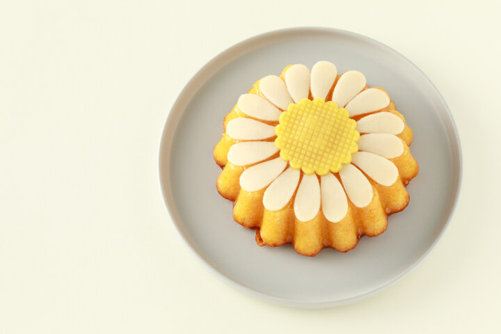 かわいいと歓声が上がる、マーガレットの花をイメージしたケーキ。土台となっている生地はしっとりした食感の濃厚な味わいです。上にあしらわれたかわいらしいマジパンの花びらを一枚ずつ割くようにナイフを入れるときれいに切れますよ。 シンプルながら、ほのかなバニラとバターの甘い香りに、幸せな気分を呼び起こされます。しっかりつまった生地は食べごたえがあり、アプリコットジャムのコーティングが甘酸っぱさのアクセントになっています。