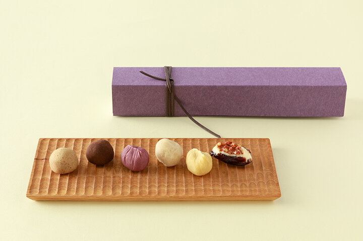 「HIGASHIYA」は、日本の伝統的な文化である和菓子の文化の世界観を表現したいとの想いから2003年に創業。銀座の中央通りにある「HIGASHIYA GINZA」をはじめ、丸の内の、南青山に3店舗があり、和菓子そのものだけでなく、パッケージや店舗のデザインも手掛けています。 「ひと口果子」は、「果子」をモチーフに作られた一口サイズの和菓子。栗やさつまいもなどの素材を練り合わせた餡と、餡に包まれた素材の味と食感を楽しめます。